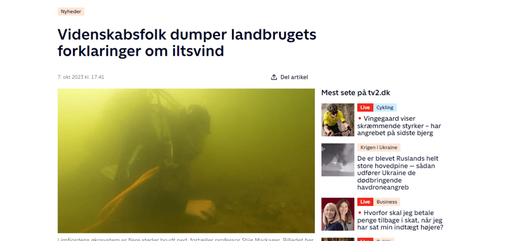 TV2 – Videnskabsfolk dumper landbrugets forklaringer om iltsvind